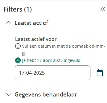Daarom overweeg ik om een automatische controle in te richten (bijvoorbeeld op basis van “Laatste actief”), waarbij wordt gekeken naar de activiteit van behandelaarsaccounts. Wanneer er gedurende een bepaalde periode (x aantal weken) geen activiteit of inlogmoment is geweest, zou het account automatisch kunnen worden gearchiveerd.