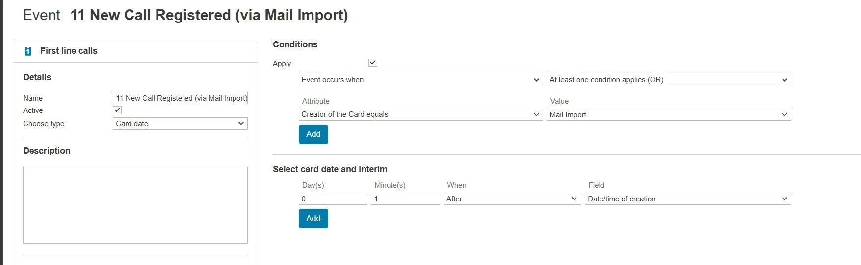 We currently advertise our HR shared inbox email address with external suppliers (e.g. recruiters) which allows them to create tickets on TOPdesk for action by our HR team. We need to create a separate email template that simply acknowledges receipt of the email without including a link to the ticket (which we do for internal emails). Is there a way to create an event that is triggered based on domain?