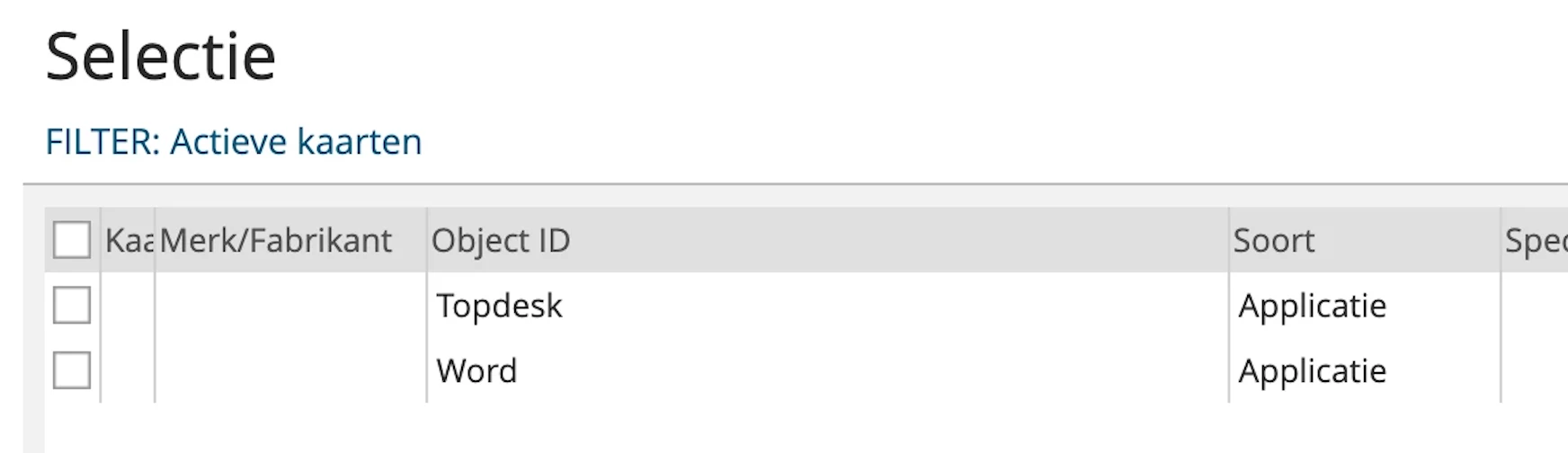 Is het mogelijk om te zoeken op meerdere verschillende assets (bijvoorbeeld simcard1 en simcard2) in één zoekopdracht/filter? (dus niet opeenvolgend). Volgens mij kan het niet, de zoekfunctie kent voor zover ik zie niet iets van een OR of AND operator.