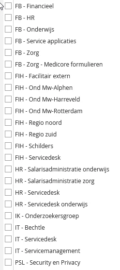 Bij mijn huidige klant heeft vrijwel elke subafdeling – wat vaak neerkomt op een apart werkproces – een eigen behandelaarsgroep. In totaal gaat het om ongeveer 80 behandelaarsgroepen, waarvan bijvoorbeeld: