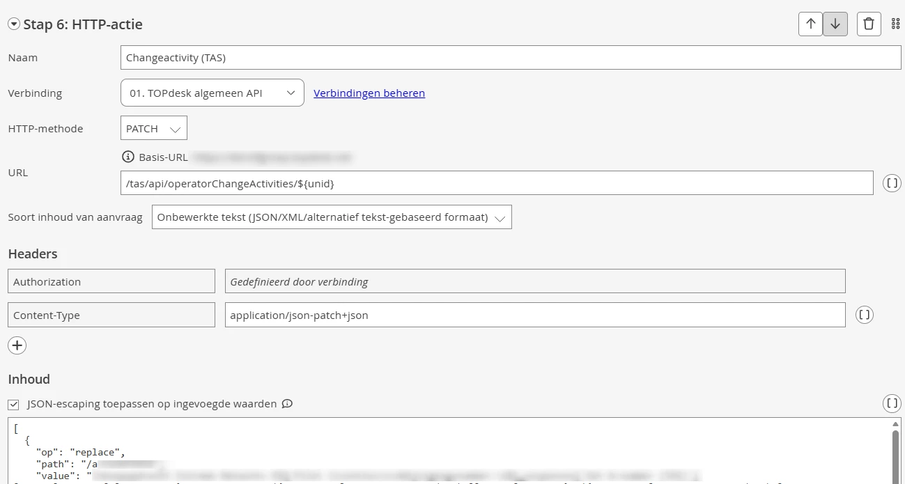 Echter het schrijven van de informatie in de wijzigingsactiviteit wil niet lukken.